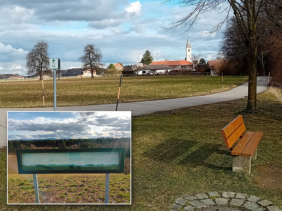 Einen Rastplatz mit weitem Blick in die Alpen finden Radfahrer etwas außerhalb der Altenmarkter Gemeindegrenze auf dem Weg von Neustadl, Richtung Kienberg.